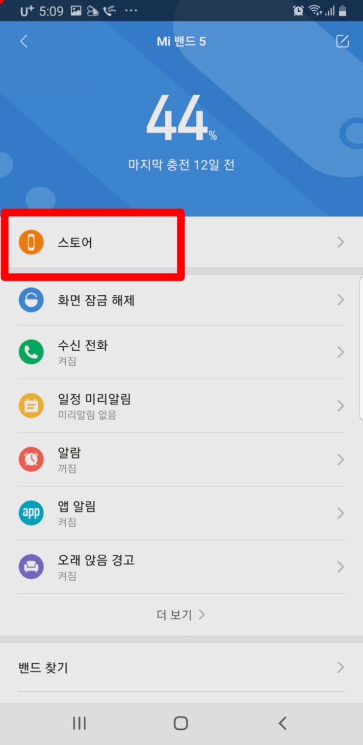 mifit앱으로 접속해 설정화면으로 들어가 맨 위에 있는 스토어를 누르면