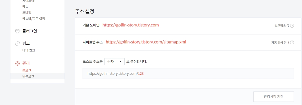 이렇게 관리 창의 블로그로 들어가셔서 확인하시면 되요.