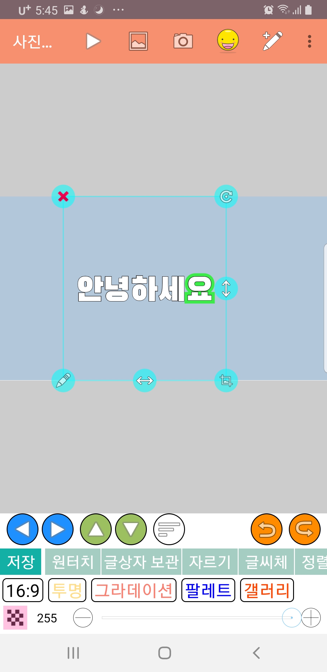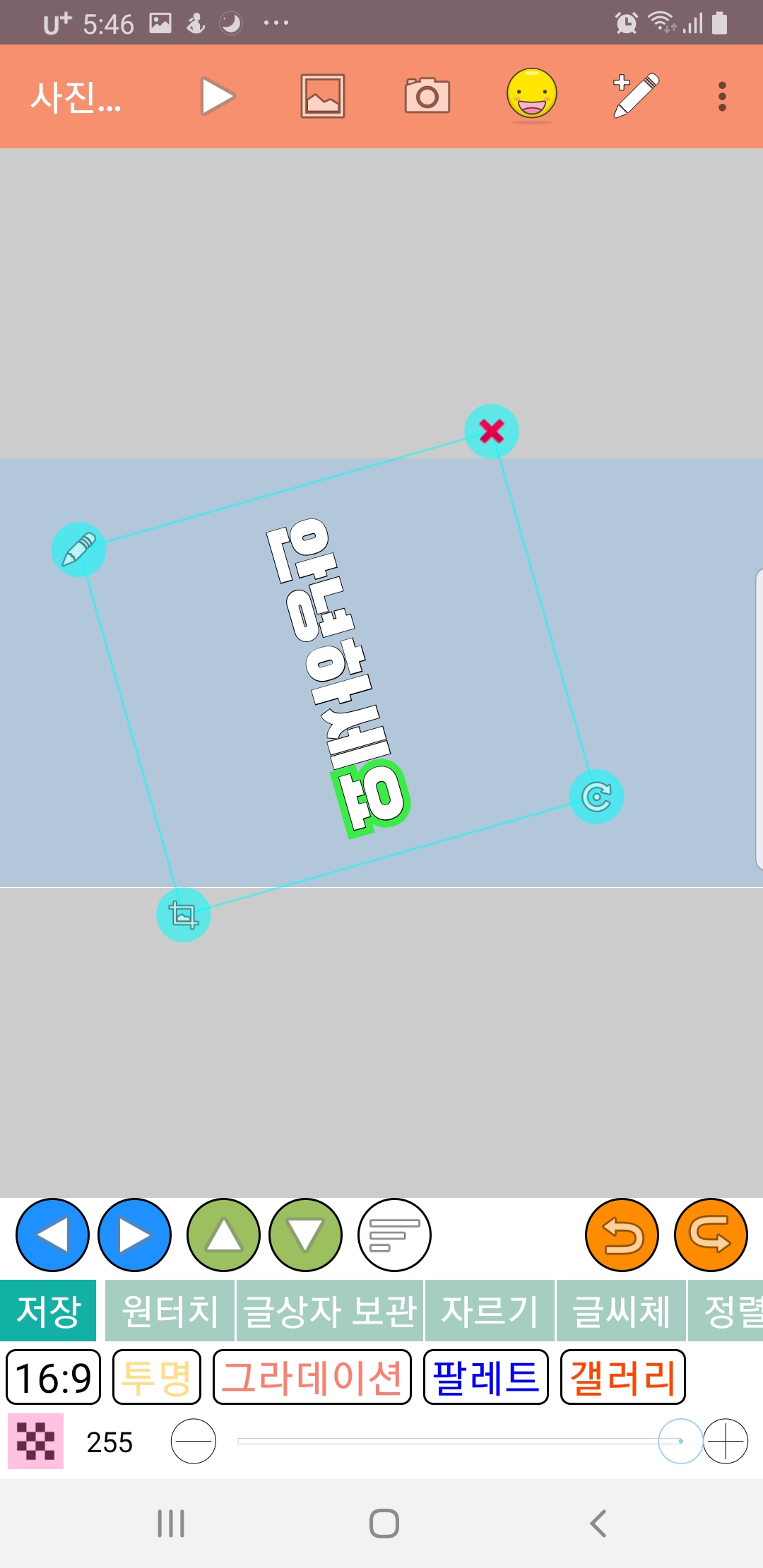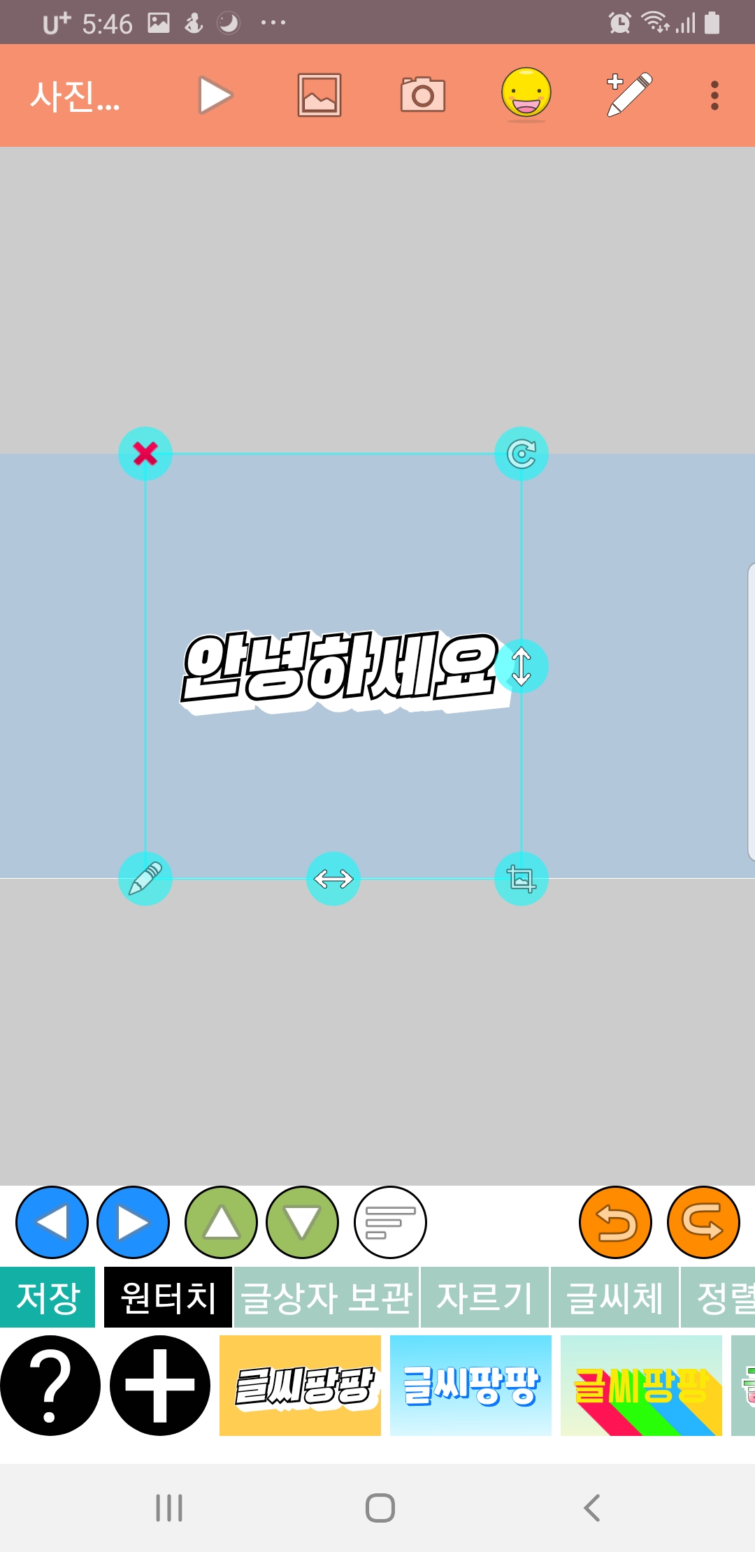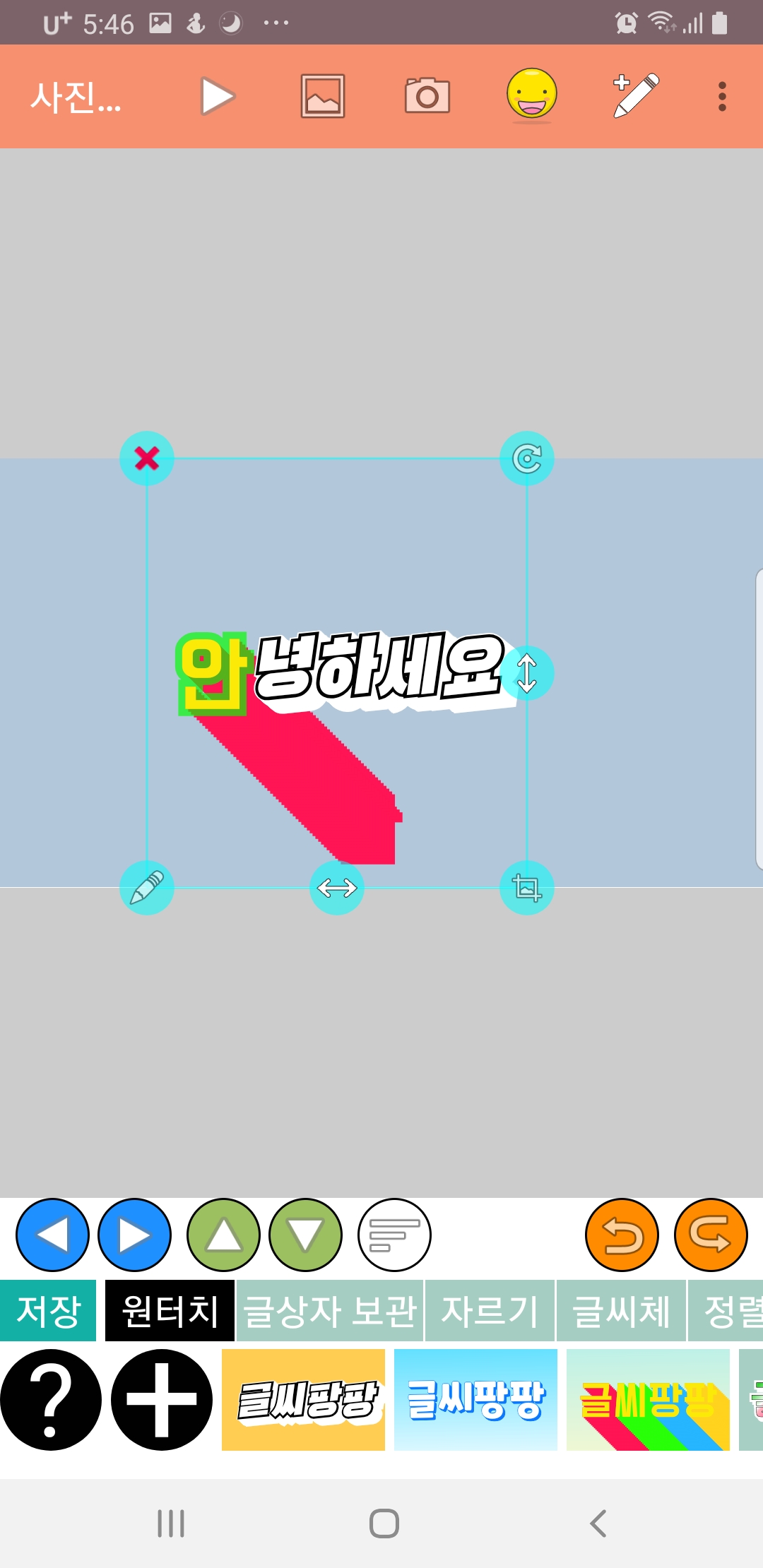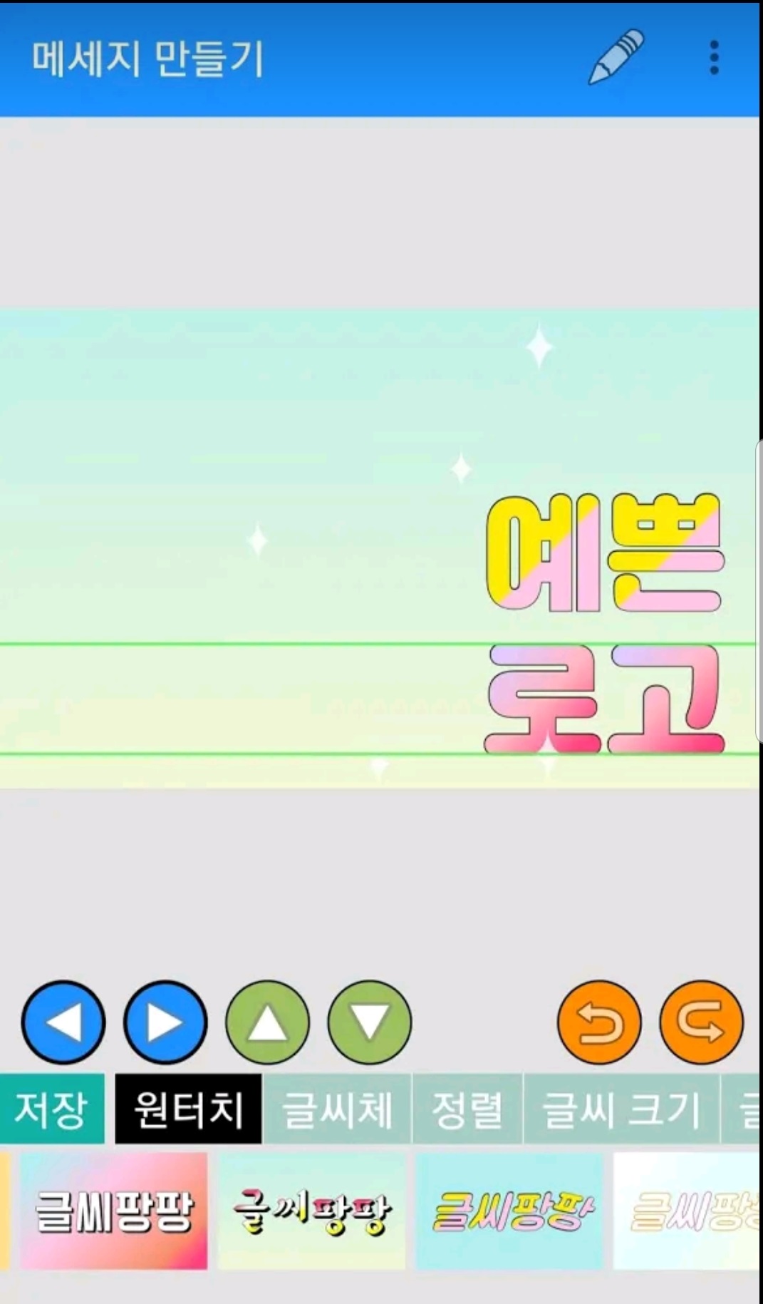 화면 아래쪽의 상하좌우 표시로 글씨를 선택하여 글씨를 하나씩 각각 편집할 수도 있어요!