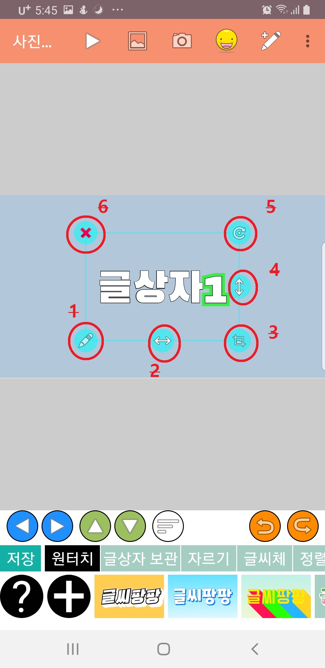 5. 글씨를 회전시키는 버튼이에요.