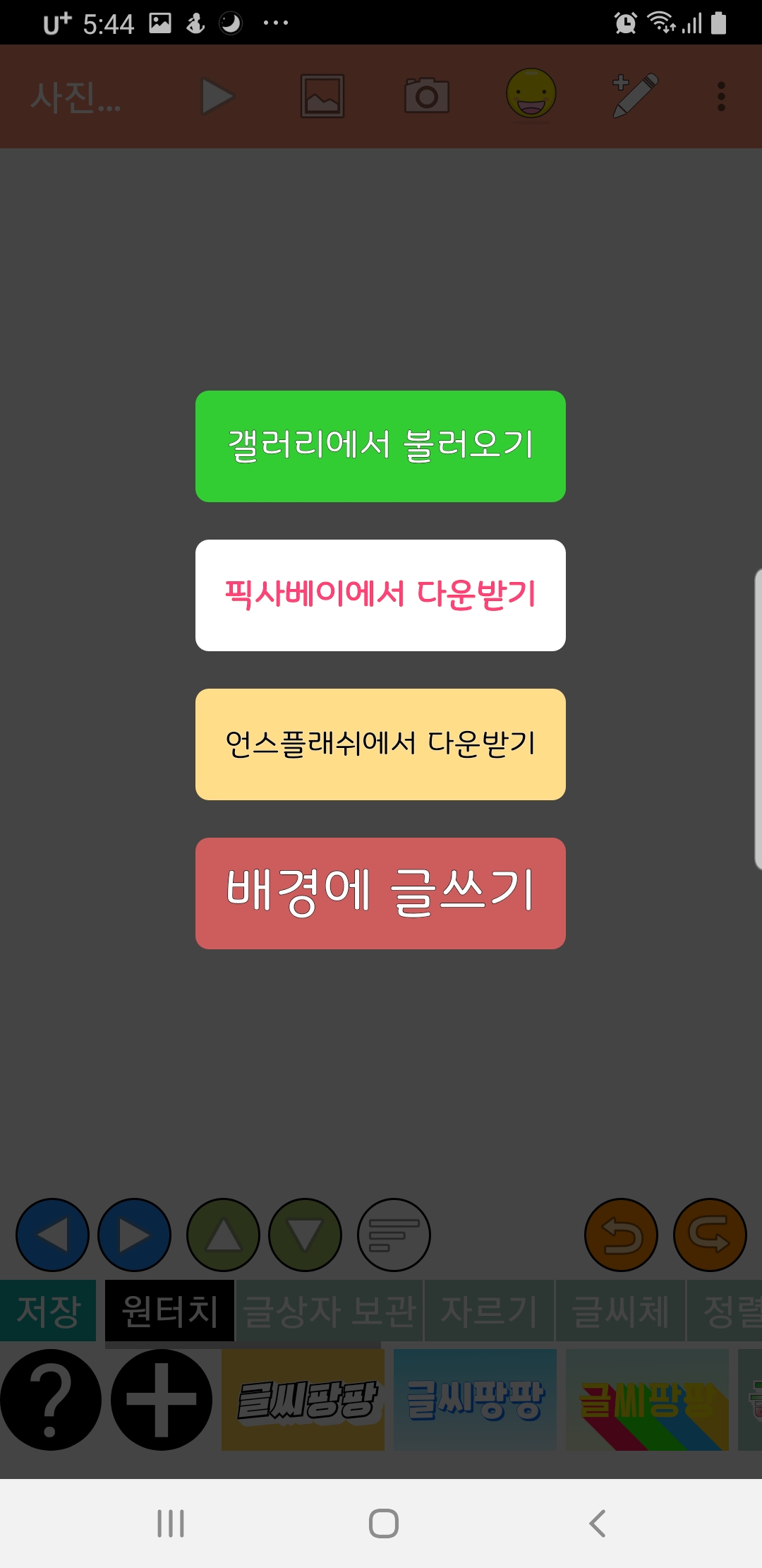 이제 사진편집하는 메인화면이네요.