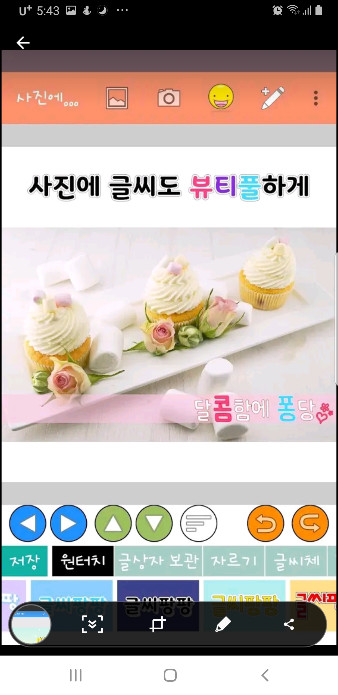 화면 아래쪽을 보시면 원터치/자르기/글씨체/정렬 등의 다양한 선택지가 있는데요.