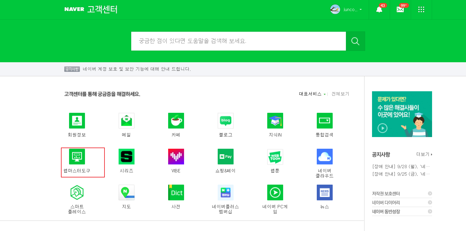 (2)웹마스터도구 클릭